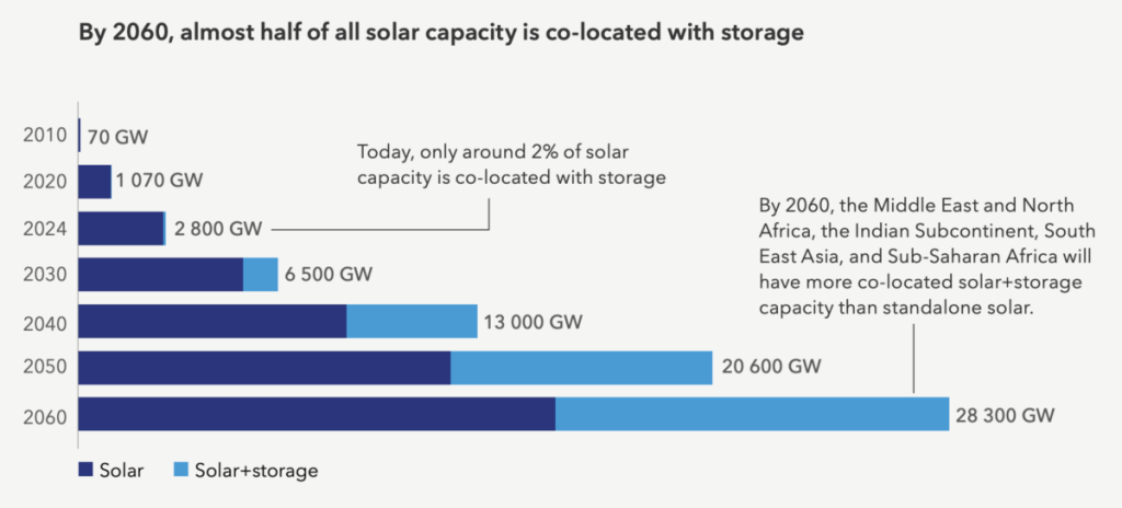 This trajectory is expected to lead to some regions of the world, namely the Middle East and North Africa, the Indian Subcontinent, South East Asia and Sub-Saharan Africa, having more co-located solar-plus-storage capacity than standalone solar capacity by 2060.